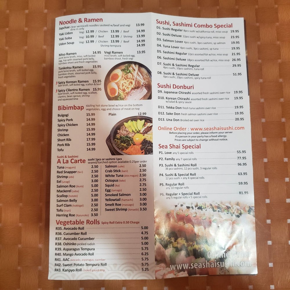 Vegetarians will find an array of options, and the restaurant's commitment to quality shines through in every dish. Highlights like spicy pork BBQ and Japchae noodles keep customers coming back, while the inviting ambiance and friendly service enhance the dining experience. Whether you're here for a casual dinner, a family gathering, or takeout, Sea Shai ensures culinary satisfaction with every visit.